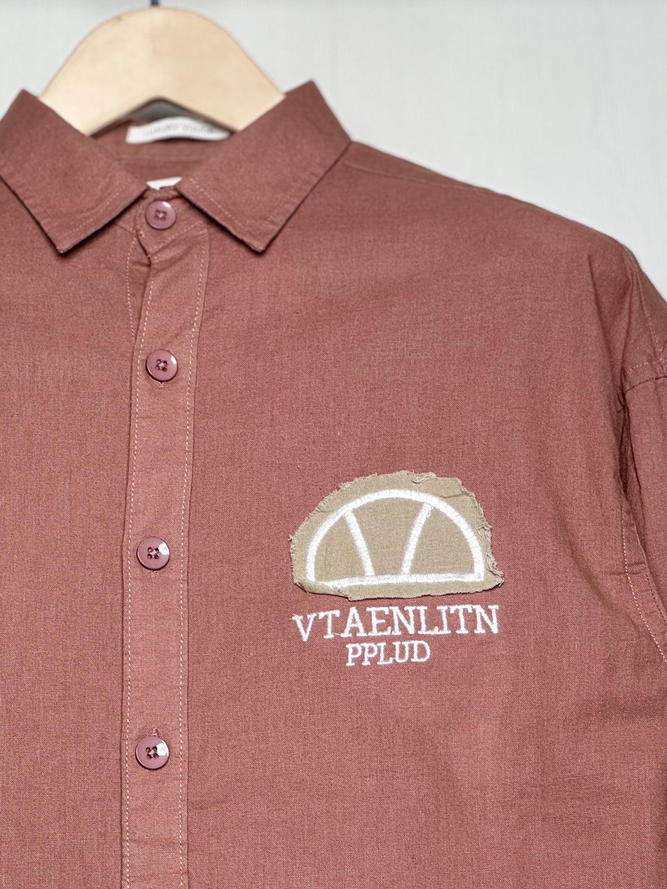 100% Linen Cotton Dusty Rose Embroidery Pattern Relax Fit Shirt