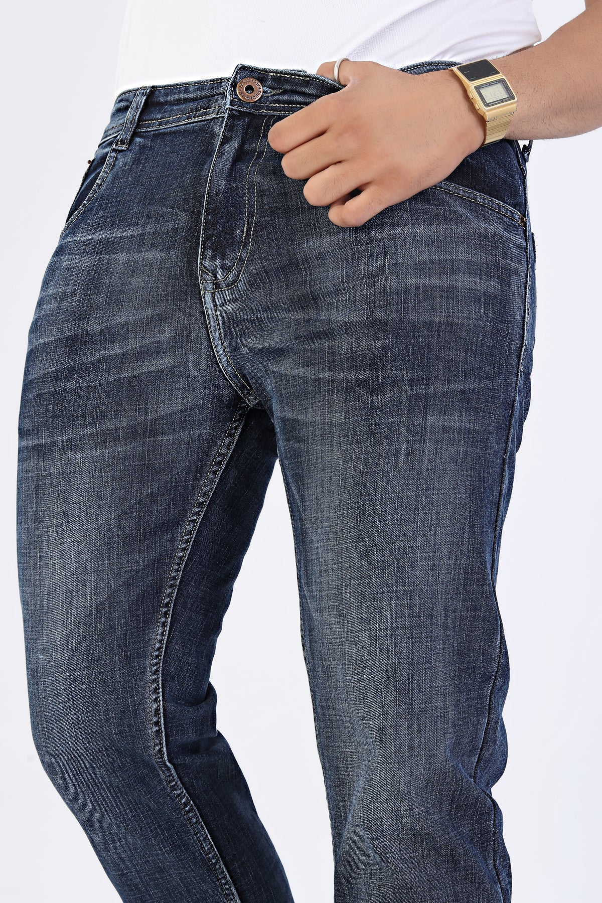 Integrating the latest streetwear trends and utilizing flexible stretch materials, Vintage Blue Tailored Fit Denim Jeans redefine modern fashion, delivering a cutting-edge aesthetic without compromising comfort. Its ankle-length silhouette enhances both mobility and an impeccable fit, ensuring that it effortlessly adapts to your dynamic lifestyle, regardless of the day's demands.